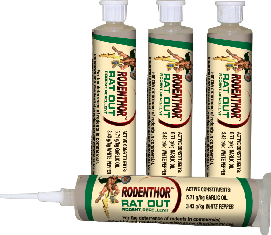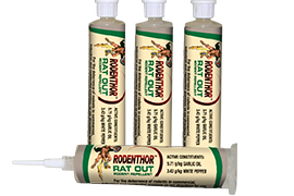 RAT OUT has two natural deterrents; garlic oil for smell and white pepper for touch. Most rodents avoid the product just based on the smell, but rodents that do come into contact feel an uncomfortable warmth on their sensitive areas (feet, face, etc.).